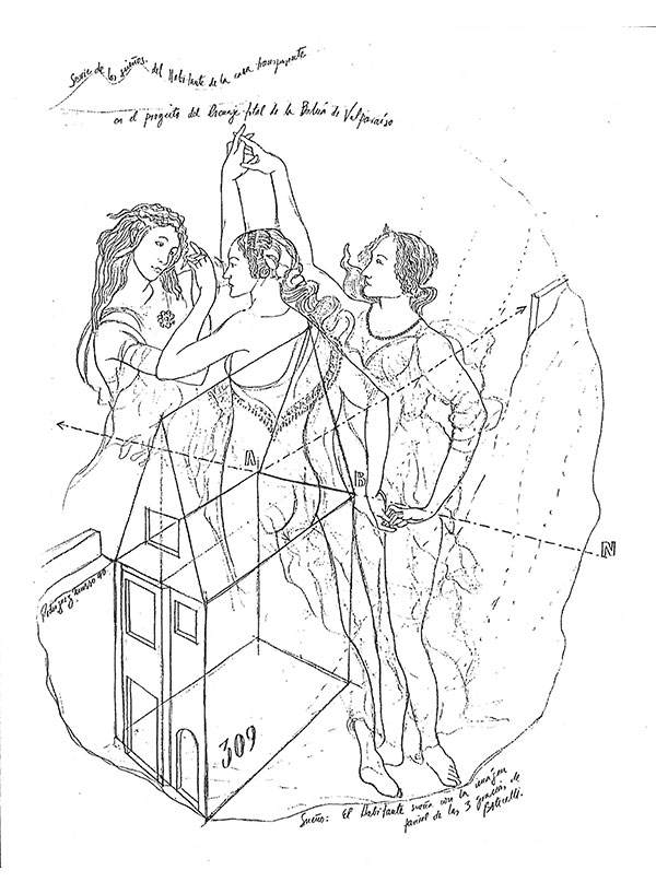 Osvaldo Rodríguez, partió al exilio en 1973 y se radicó por dos décadas en el extranjero. Estando en Europa, se convirtió en un destacado embajador cultural; realizó conciertos, publicaciones, exposiciones y dictó cátedras en universidades. Durante todo este periodo, la nostalgia de su ciudad natal, Valparaíso, quedó plasmada en La Casa Transparente, un proyecto poético materializado en una obra gráfica de alrededor de 60 cuadros, realizados con una técnica mixta de dibujo sobre papel para el que Rodríguez utiliza punta seca, y luego pinta con pastel y tinta. Acompañados de textos breves, estos cuadros ilustran los distintos sueños del “habitante de la casa transparente” en los que se manifiesta, sin más ley que la de los sueños, el mundo interior de recuerdos, imágenes, mitos, temores, fantasías y homenajes, recreando las casas de Playa Ancha o la Venus de Boticelli como náufragos de la memoria. Parte de esta obra es reproducida en el libro Canto a Valparaíso, que incluye también poemas, canciones, ensayos y otros escritos a modo de antología, publicado por la Universidad de Valparaíso en 1996, año del fallecimiento de Osvaldo.