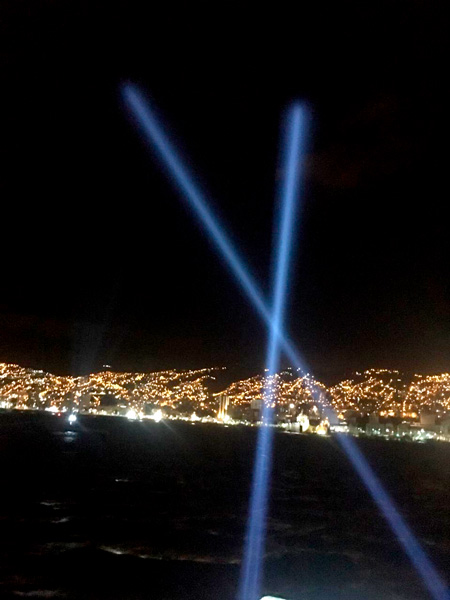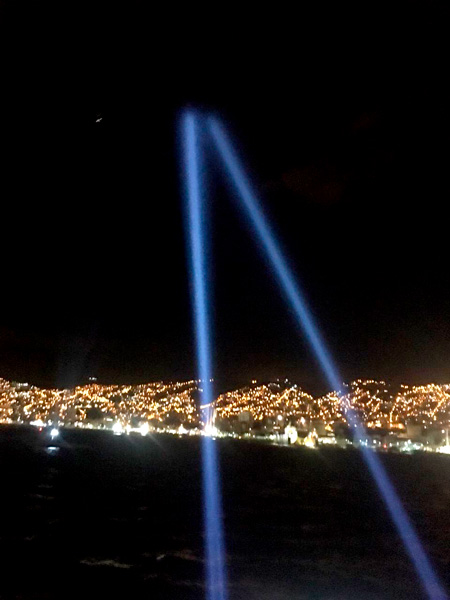Realizada en la bahía de Valparaíso. Se probaron fuentes lumínicas instaladas esta vez en tierra, específicamente en puntos determinados por el Gitano en sus planos como por ejemplo, Molo de Abrigo, Muelle Prat y Muelle Barón.
